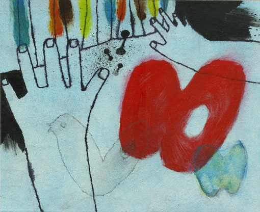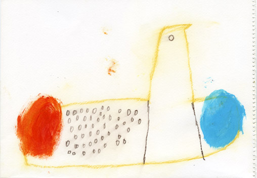 「うずらの時間」 Sペーパー/リキテックス/ペンキ/マーカー/鉛筆/パステル