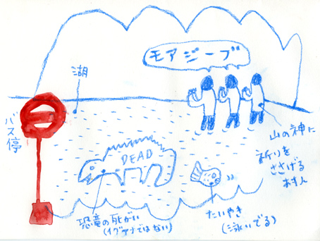 「うそー、恐竜が死んでる。写真とってブログにアップしなきゃ」と