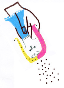 お金を入れると店の中のおじさんが、ひもを引っ張り