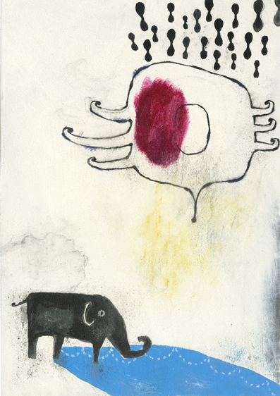「象さんの夏休み」 Sペーパー/ペンキ/リキテックス/マーカー/パステル